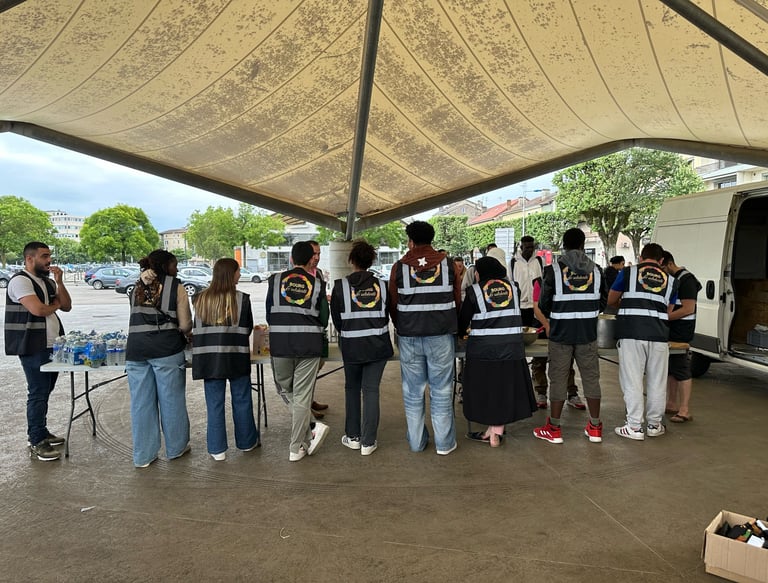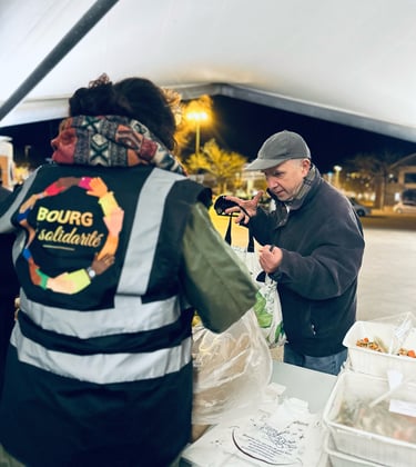 Chaque dimanche soir de 18h30 à 20h30 au champ de foire de Bourg-en-Bresse, nous organisons une distribution de repas complets, offrant un moment de partage et de solidarité.