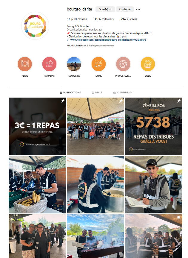 Suivez nous sur Instagram et Facebook pour suivre en direct nos distributions de repas !